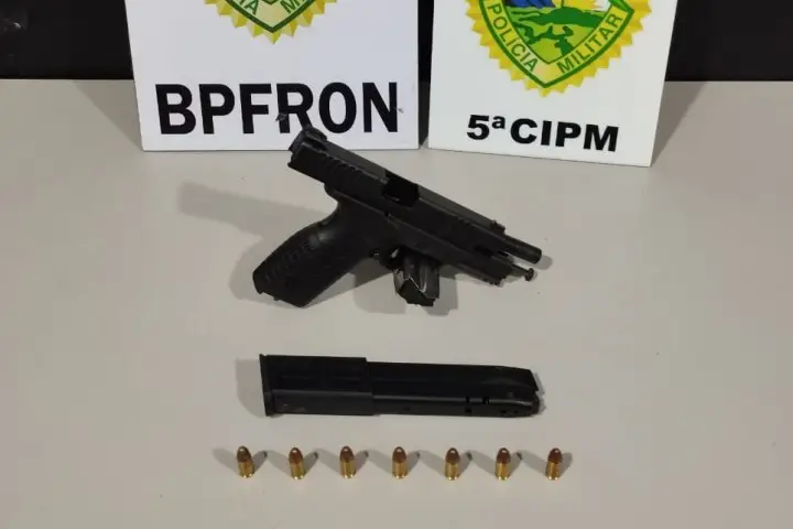 Uma ação conjunta de policiais do BPFron (Batalhão de Operações de Fronteira) e 5ª Companhia Independente da Polícia Militar (CIPM) realizada nesta quinta-feira (18), na PR-323, em Cruzeiro do Oeste, resultou na prisão de dois homens, de 31 e 21 anos, que foram flagrados com uma pistola 9mm que seria entregue no município de Cianorte.