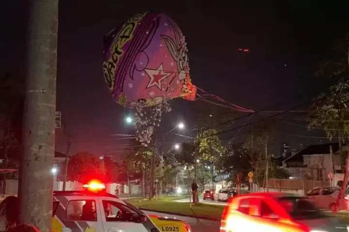 Um balão que caiu na Avenida Prefeito Omar Sabbag, na região do Jardim Botânico, perto de um hospital, em Curitiba, causou muitos transtornos na noite deste domingo (21).