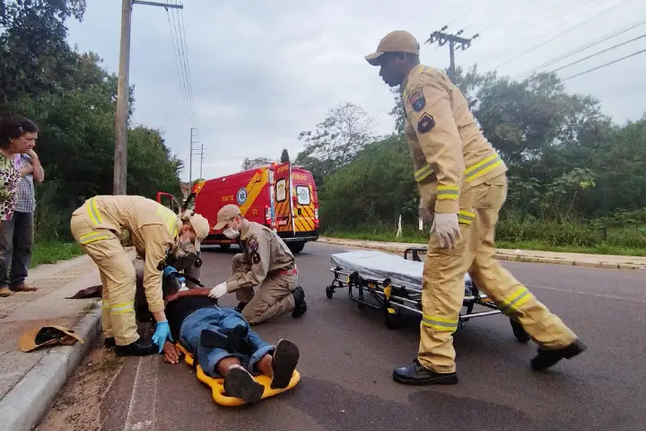 Uma condutora que seguia logo atrás parou o carro para ninguém atropelar a vítima. Ela e outro rapaz acionaram a equipe de socorro para prestar atendimento.