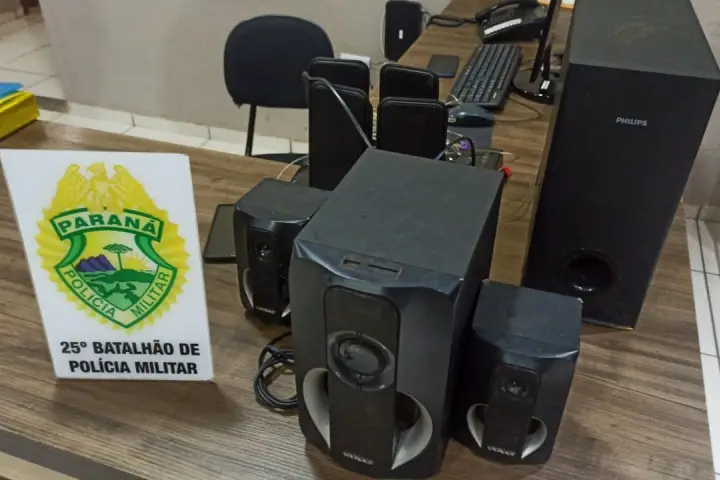 Após várias denúncias de perturbação de sossego, a Polícia Militar (PM) de Umuarama apreendeu aparelhos de som que estavam sendo utilizados em uma festa no Jardim Paris, em Umuarama, na madrugada desta quinta-feira (25). De acordo com os militares, eles tiveram que retornar ao local duas vezes, pois os moradores insistiram na barulheira.
