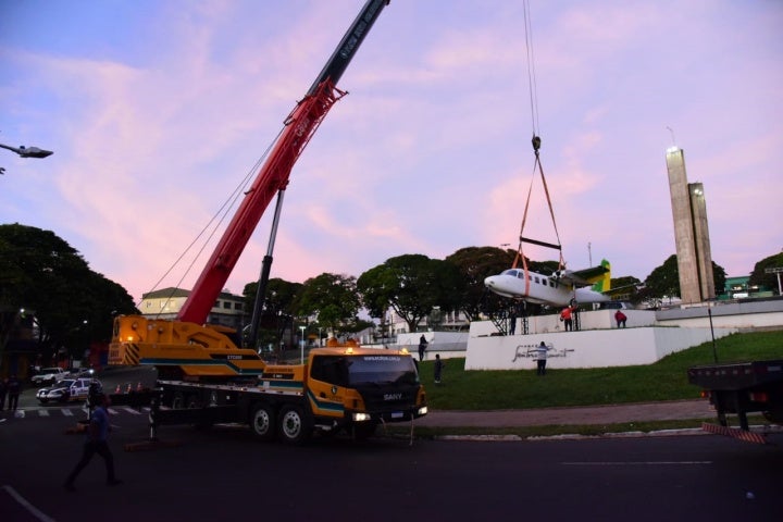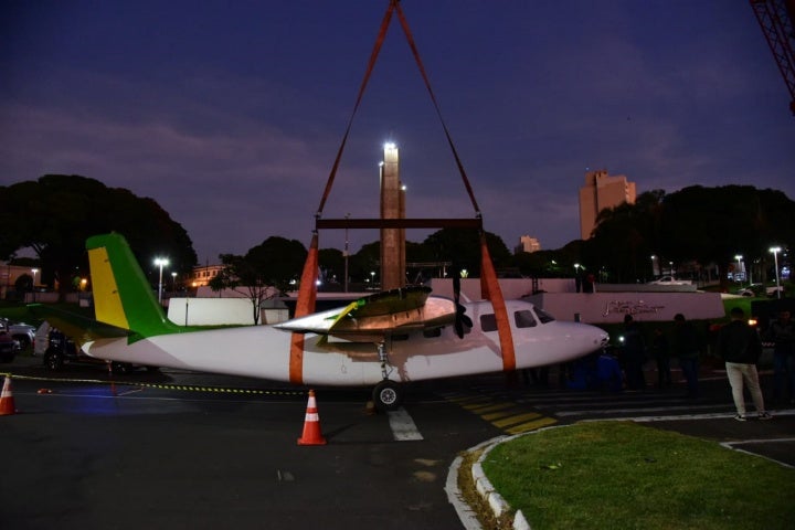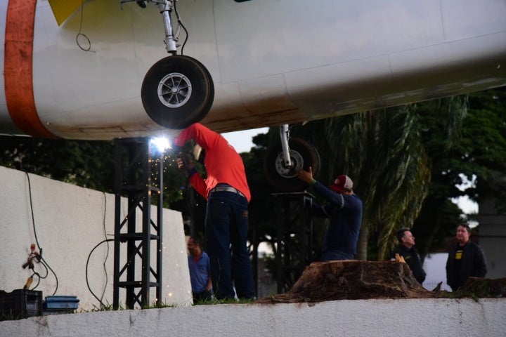 A instalação da aeronave modelo Twin Commander 680FL com prexixo PT-CFR aconteceu nas primeiras horas desta manhã, e contou com a ajuda de um caminhão guincho que transportou o avião até o local, onde ele foi fixado por vários trabalhadores. Após concluída as adequações do espaço, é esperado que a aeronave siga livre para visitação.