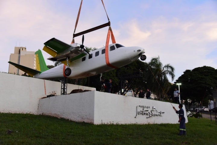 Há semanas atrás, a aeronave foi transferida para um espaço da prefeitura e desde então recebia uma reforma de aparência para ser tornar um novo monumento. “Escolhemos a Santos Dumont justamente por esta relação com o pai da aviação, um brasileiro que muito nos honra”, afirmou o prefeito Hermes Pimentel.