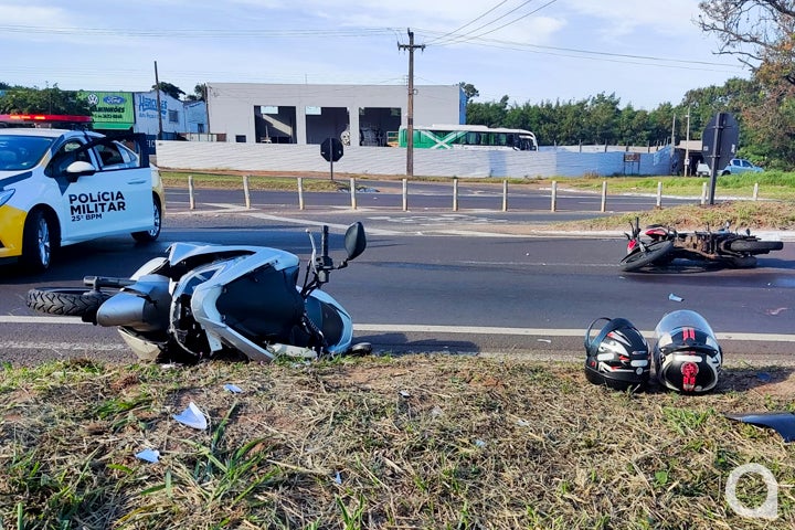 Um acidente entre duas motocicletas, uma Titan 160 e uma Honda PCX, deixou duas pessoas feridas na manhã deste sexta-feira (26), uma delas em estado mais grave, no trecho urbano da PR-323, em Umuarama.