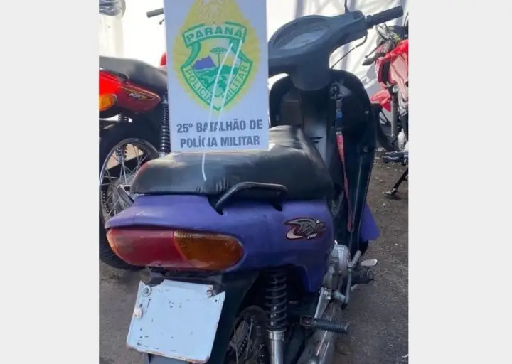 A Polícia Militar (PM) de Umuarama apreendeu uma motoneta Honda Biz com adulteração de sinal identificador. A situação aconteceu por volta das 10h50 desta sexta-feira (26) no Parque San Remo.
