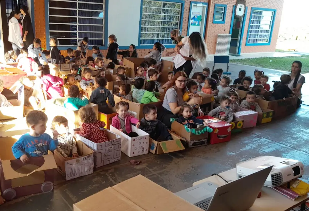 Além disso, cada unidade organizou brincadeiras utilizando materiais reciclados. Teve jogos de boliche, tobogã com papelão, jogo na boca da garrafa, chute ao gol na caixa, ‘vai e vem’ com garrafas PET, cinema na caixa e jogo de argolas, entre outros.