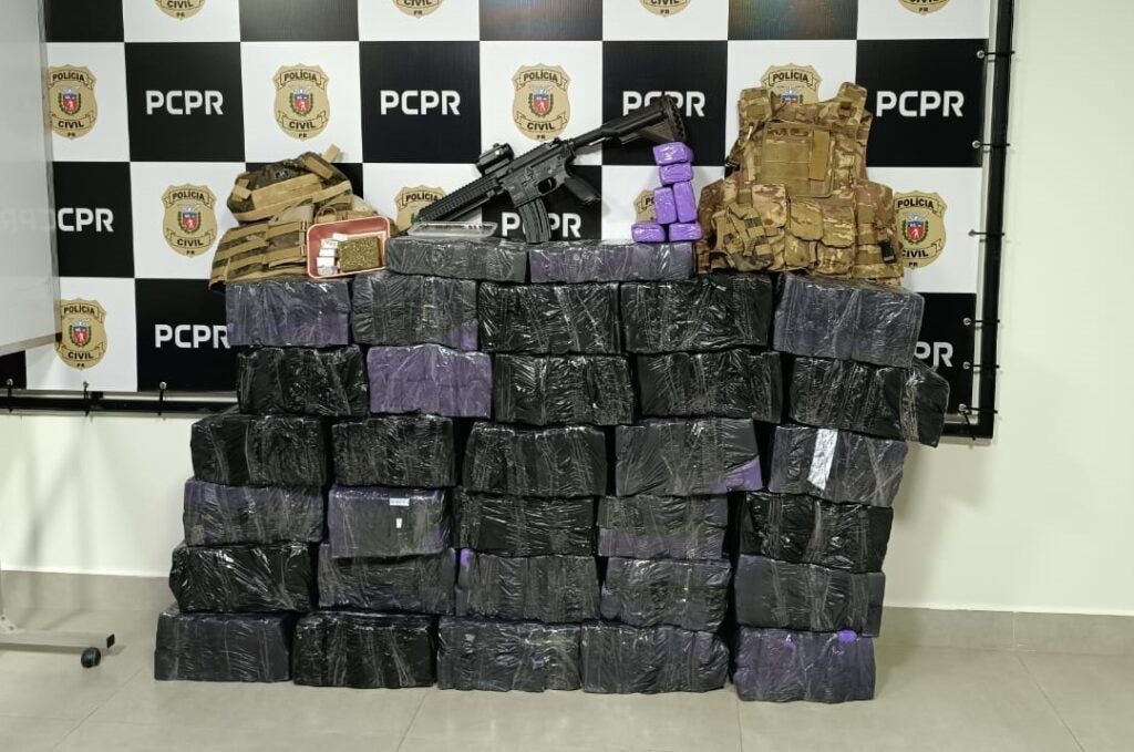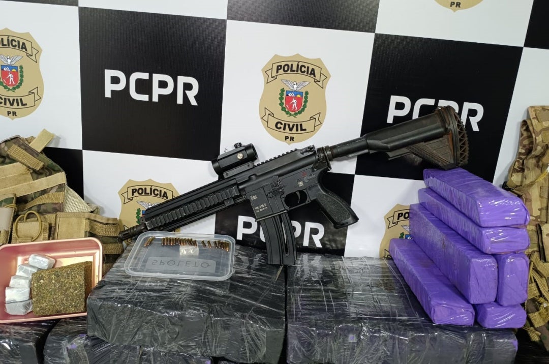 Polícia Civil de Umuarama apreende 328 quilos de maconha, fuzil, munições e carro blindado