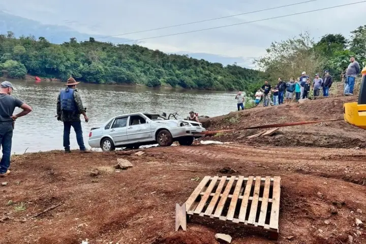 O VW Santana que caiu dentro da balsa do Rio Piquiri, entre Alto Piquiri e Formosa do Oeste, no último domingo (28) foi retirado, na tarde desta terça-feira (30) de dentro da água. O condutor do veículo, identificado como Leonildo, de 80 anos, ainda não foi localizado.