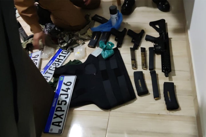 O veículo prata foi visto abordado em um primeiro momento, e não estava portando nenhum material ilícito ou armamento. Porém em continuidade à abordagem, os policiais o encontraram em uma chácara, onde também foram localizados um fuzil calibre .5,56, duas pistolas calibre 9mm, um colete balístico, diversos carregadores, munições, máscaras e placas de carros – sendo que uma pertencia ao carro que foi incendiado.