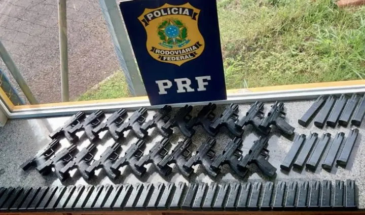 Aprofundando a vistoria, eles encontraram 20 pistolas 9 mm de fabricação turca, além de 49 carregadores, tudo escondido dentro da lataria das quatro portas do carro. Todas as pistolas estavam com a numeração raspada.