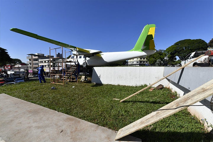 A montagem do avião na Praça Santos Dumont começou na última sexta-feira, 26, com o transporte realizado da chácara vizinha ao Aeroporto Regional Orlando de Carvalho até o local de exposição, onde ele ficará permanentemente. As asas foram reduzidas para facilitar o percurso, acompanhado de perto por viaturas da Guarda Municipal e Polícia Militar.