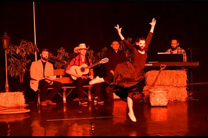 O espetáculo ‘Caminhos de Umuarama’ reuniu no palco do Centro Cultural mais de 50 artistas entre atores do Grupo Encena, dirigidos por Vinícius Guerra, músicos regidos pelos maestros Marco Aurélio Tavares e Urias Castro – além da participação especial do violeiro Gabriel Paixão – e bailarinas coreografadas e dirigidas pela professora Tatiana Biaca, que interpretou pessoalmente a Geada Negra, a representação do mais trágico episódio ocorrido na cidade em julho de 1975, quando os cafezais foram totalmente dizimados pelo fenômeno meteorológico que transformou a realidade da cidade para sempre.