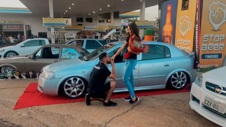 Um pedido de casamento aconteceu durante a competição de carros rebaixados, no posto Pinheirão. Marcos Everton de Oliveira, 21 anos, pediu a mão de Nathália de Souza Fonseca da Silva, 20 anos, no último domingo (4).
