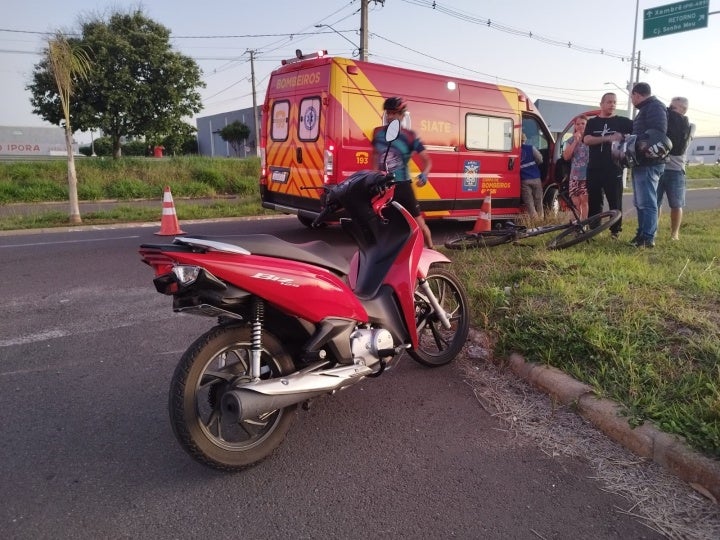 O Corpo de Bombeiros foi acionado para prestar atendimento à vítima. O motociclista foi socorrido com um ferimento no membro superior direito e seria encaminhado ao hospital.