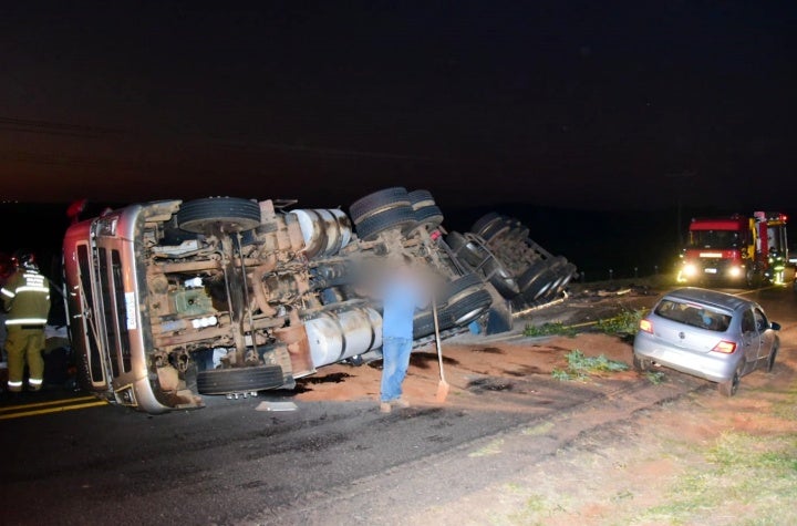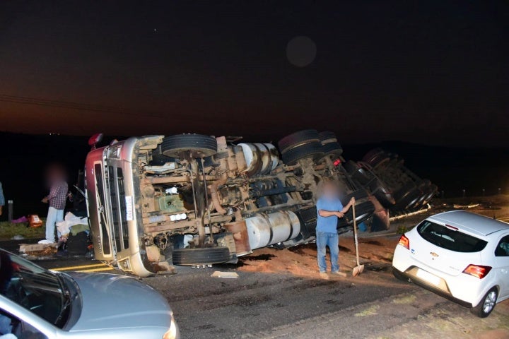 O Corpo de Bombeiros deslocou uma equipe com caminhão ao local do acidente. Havia vazamento de óleo do motor da carreta. Populares jogaram terra para amenizar os riscos de que o óleo da pista causasse novos acidentes.