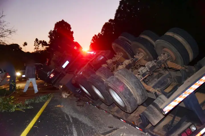 O sobrinho informou que estava descansando quando sentiu a carreta tombando. O acidente aconteceu em um trecho de reta e ele não soube dar detalhes de como o que ocasionou o tombamento.