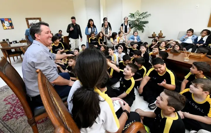 Alunos do Colégio Global das turmas do 1º, 2º e 3º ano visitaram o gabinete do Executivo Municipal para uma ‘entrevista’ com o prefeito Hermes Pimentel na terça (6) e também nesta quarta-feira (7).