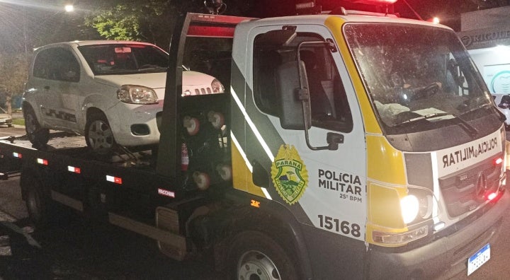 Um veículo Fiat Uno 2014/2015 de cor branca foi apreendido pela Polícia Militar (PM) na tarde de quarta-feira (7) carregado com cigarros contrabandeados. O fato teve início na rodovia PR-587, em São Jorge do Patrocínio.