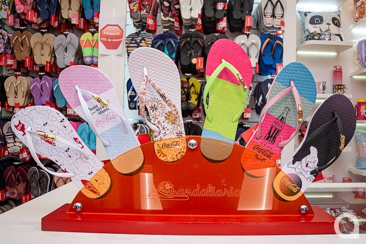 É importante destacar que a Sandaliaria trabalha apenas com produtos originais e sempre oferece os últimos lançamentos de grandes marcas, como: Havaianas, Crocs, Reserva, Coca Cola, Colcci, My Shoes Arezzo, Boa Onda, Uatt?, Zona Criativa, entre outras.