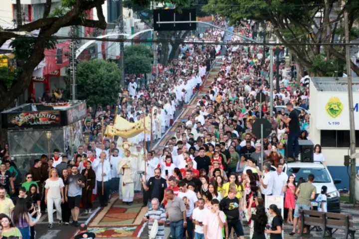 Centenas de fiéis compareceram à Solenidade de Corpus Christi na tarde de quinta-feira (8), em Umuarama. O evento reuniu todas as paróquias da cidade e desde cedo os fiéis da cidade trabalharam na confecção dos tradicionais tapetes que cobriram todo o trajeto da procissão.