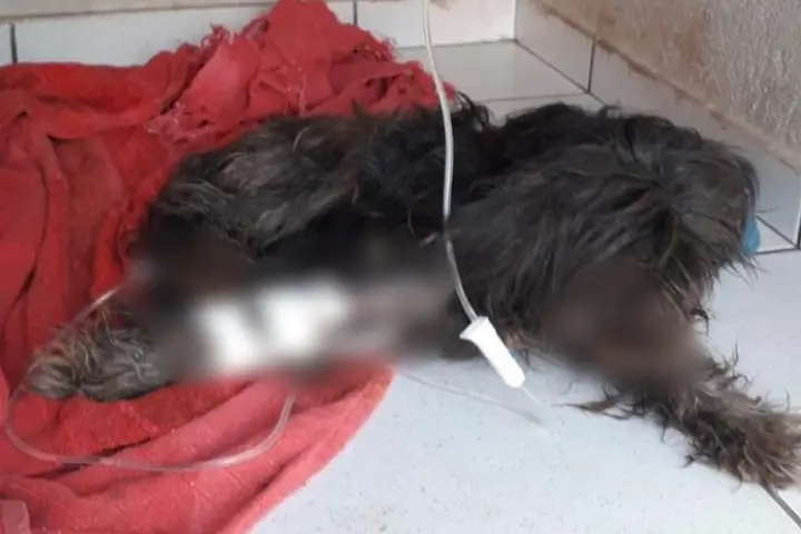 O animal foi levado ao veterinário e sua vida está ameaçada.