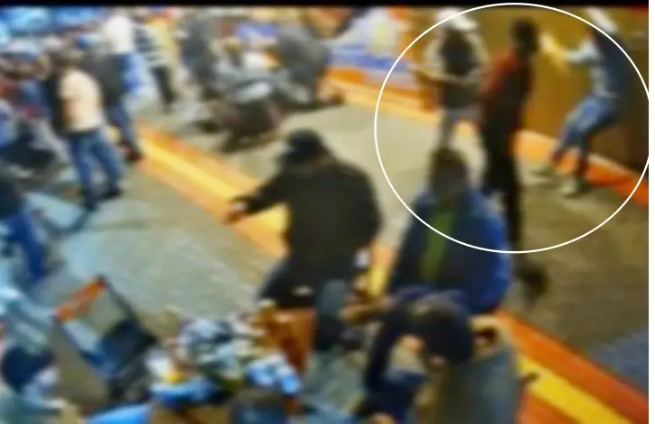 O vídeo mostra Gean conversando com um dos suspeitos. Outro homem que estava junto empurra a vítima e o primeiro, que estava ao lado, começa a desferir os golpes contra Gean. Ele cai no chão, próximo um portão de entrada do estabelecimento.