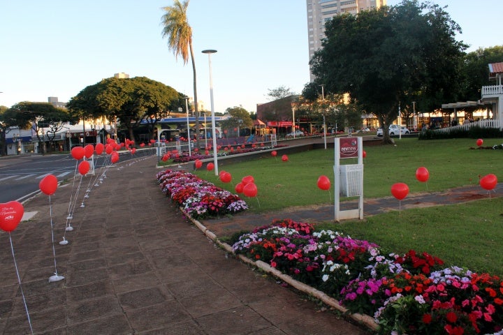 No sábado (10), uma ação complementar retocou o tradicional colorido das flores da praça Miguel Rossafa para celebrar a proximidade do Dia dos Namorados em grande estilo. Já nas primeiras horas da manhã, os balões espalhados por todos os pontos do logradouro despertaram a atenção.
