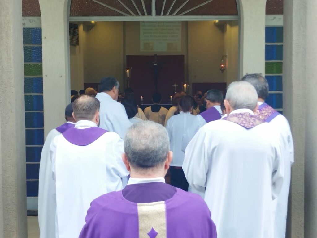 O funeral, que acontece na Paróquia Santuário Nossa Senhora do Perpétuo Socorro, é acompanhado por parentes, colegas padres e também por dezenas fiéis. Logo que chegou ao santuário, o copo foi recebido com uma missa.