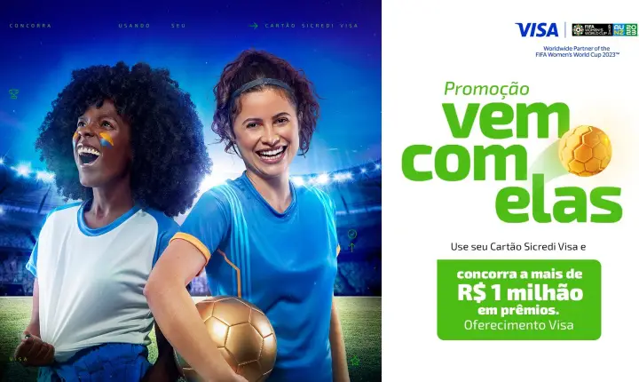 O Sicredi e a Visa, parceira oficial da FIFA e da Copa do Mundo da FIFA™ desde 2007, apresentam a promoção “Vem com elas”. A campanha possibilitará aos associados com cartões de crédito e débito Sicredi Visa concorrer a mais de R$ 1 milhão em prêmios.