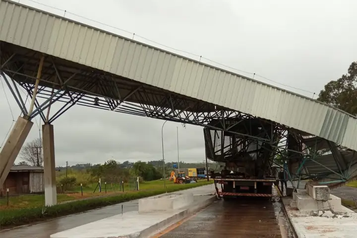 A Polícia Rodoviária Federal (PRF) informa que a rodovia BR-487 se encontra totalmente interditada na divisa entre o Paraná e o Mato Grosso do Sul. O fato acontece devido a um acidente envolvendo um veículo de carga que colidiu com uma estrutura coberta no km 6,8, em Alto Paraíso/PR, que acabou por colapsar parcialmente sobre o veículo e a pista.