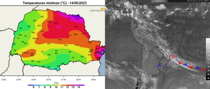 De acordo com o Simepar, a temperatura máxima será medida em 13°C