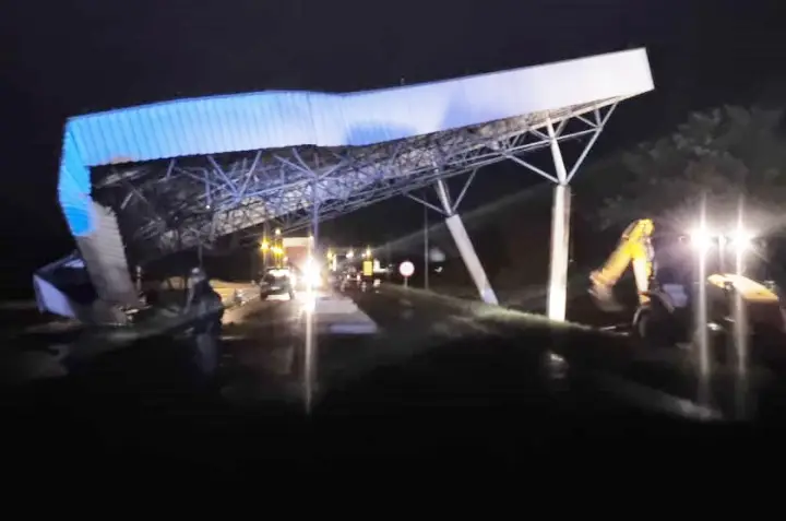 Foi necessário fazer a remoção desta cobertura (que é da Adapar) para que o tráfego voltasse a circular pelo trecho. Foi necessário o uso de maquinário para a retirada da estrutura.