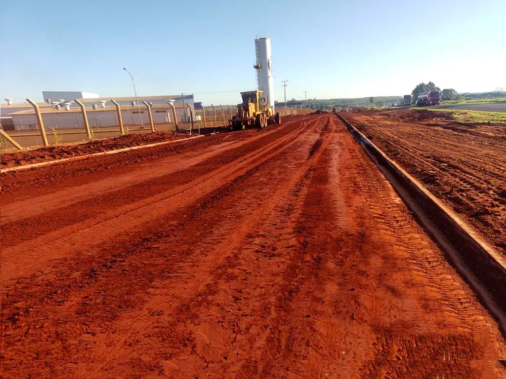 Se os trabalhos para a conclusão do viaduto serão retomados em breve, um pouco mais à frente as máquinas já operam em ritmo acelerado na construção do trevo da Levo Alimentos. O investimento total será de aproximadamente R$ 4,5 milhões, sendo que deste montante, a prefeitura responde por meio milhão, como contrapartida.