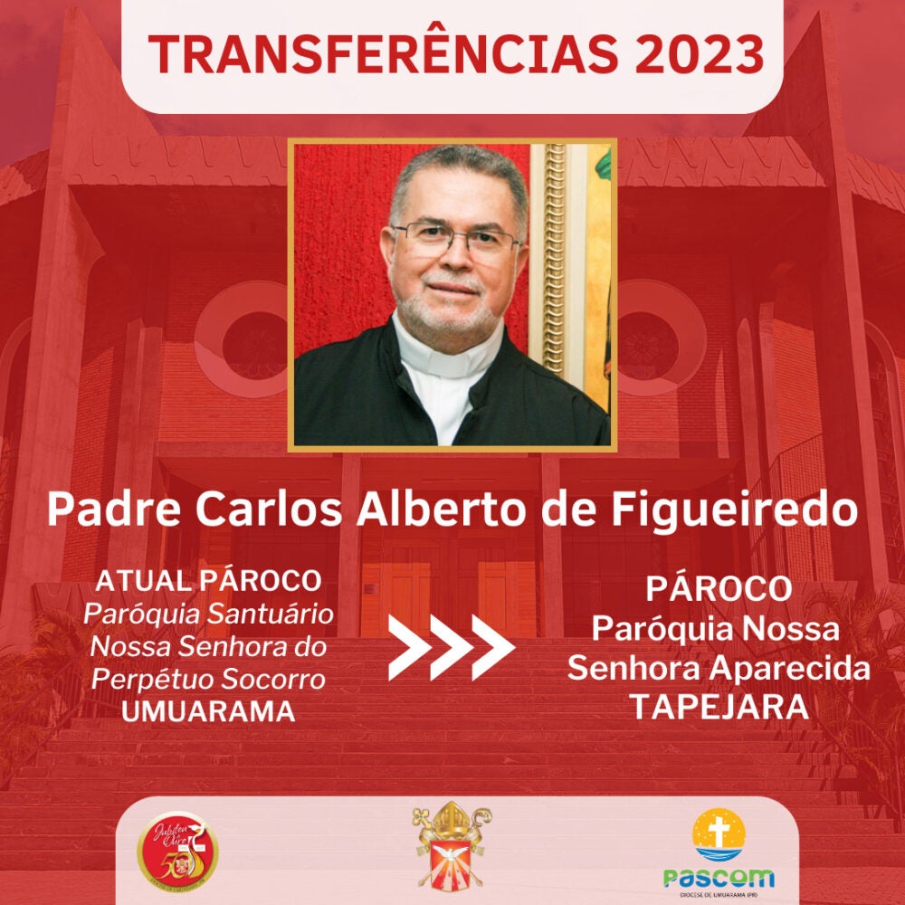 – Padre Carlos Alberto de Figueiredo, deixa o Santuário Nossa Senhora do Perpétuo Socorro de Umuarama/PR e assume como Pároco na Paróquia Nossa Senhora Aparecida de Tapeja/PR.