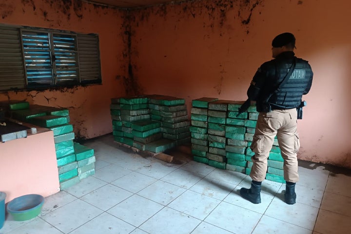 A Polícia Militar (PM) localizou nesta sexta-feira (16) uma grande quantidade de maconha na zona rural de Francisco Alves, além de fazer a apreensão de uma arma de fogo de uso permitido. Um homem suspeito, de 41 anos, foi identificado através de documentos localizados no imóvel.