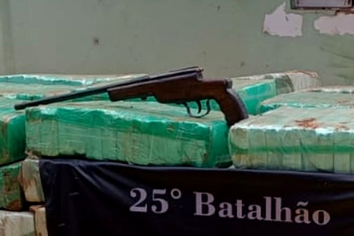 Os policiais encontraram em um cômodo da residência a droga e em outro ambiente da casa a arma, uma garrucha calibre .22 da marca Galan, carregada com um cartucho intacto. Outras 10 munições do mesmo calibre estavam no imóvel.