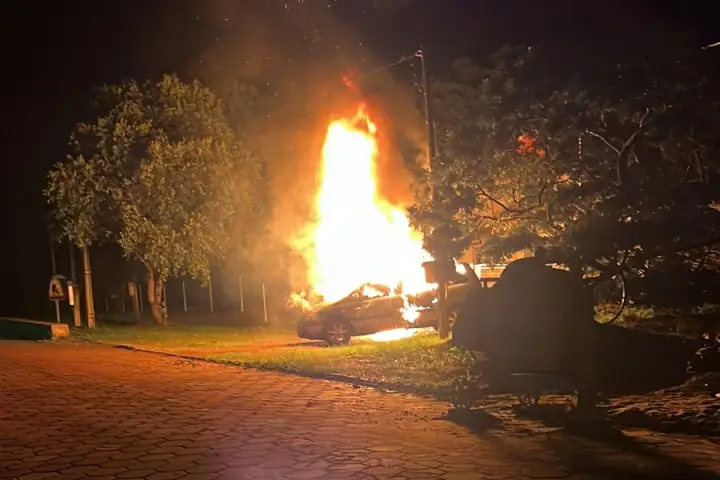 Incêndio destrói carro que estava estacionado em frente à UBS de Iporã