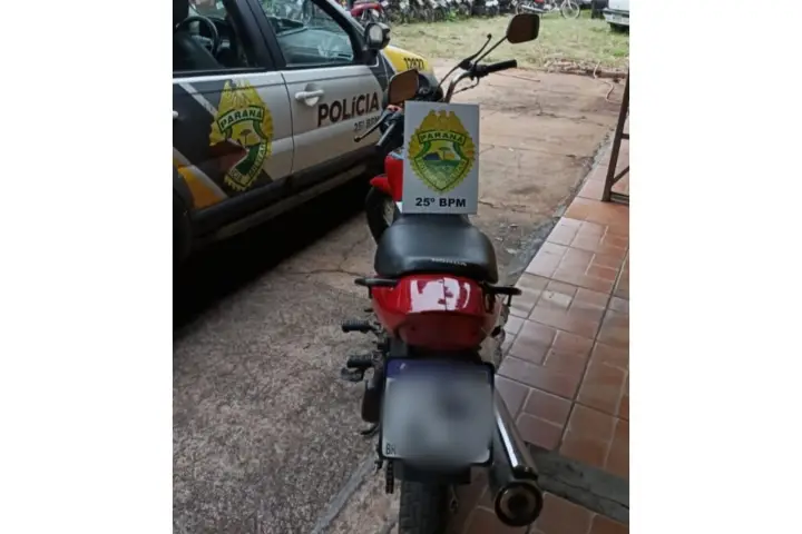 A perseguição só se encerrou na PR-587, na saída para o município de São Jorge do Patrocínio, onde os policiais conseguiram alcançar o suspeito. Em verificação, foi constatado que a placa da motocicleta é falsa e que ela também é baixada pelo Detran – o que significa que ela somente poderia ser destinada à sucata.
