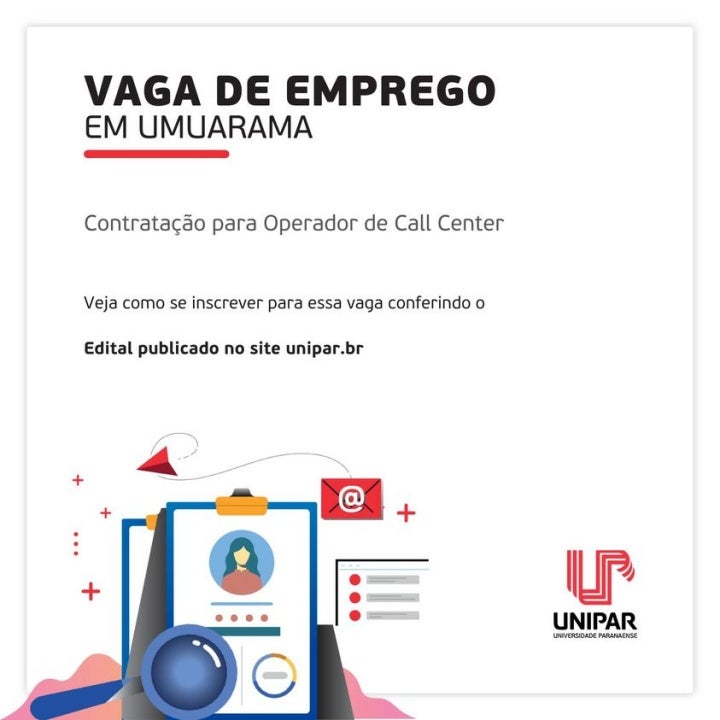 A Unipar (Universidade Paranaense) também divulgou através de suas redes sociais que está com uma vaga disponível para contratação de Operador de Call Center.