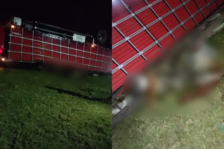 Fotos enviadas por leitores do OBemdito revelam cenas catastróficas do acidente, que resultou em ferimentos no condutor e morte de parte da carga viva.