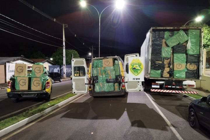 A Polícia Militar (PM) de Umuarama realizou uma grande apreensão de cigarros contrabandeados do Paraguai, na madrugada deste sábado (24). De acordo com os militares, foi apreendido um caminhão e cerca de 800 caixas de cigarros paraguaios avaliadas em aproximadamente R$ 2 milhões em um depósito no bairro São Cristóvão.
