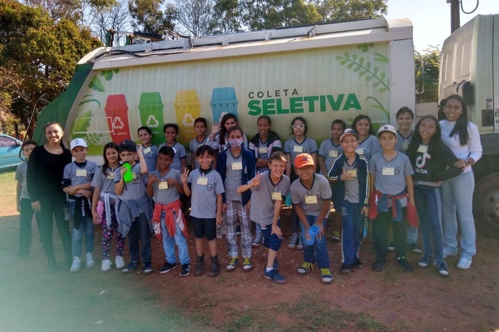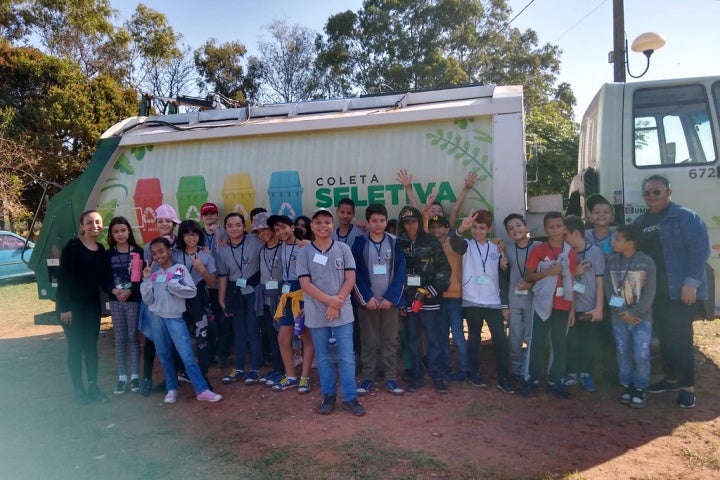 Alunos da Escola Dr. Ângelo Moreira participam de aula de campo no aterro sanitário