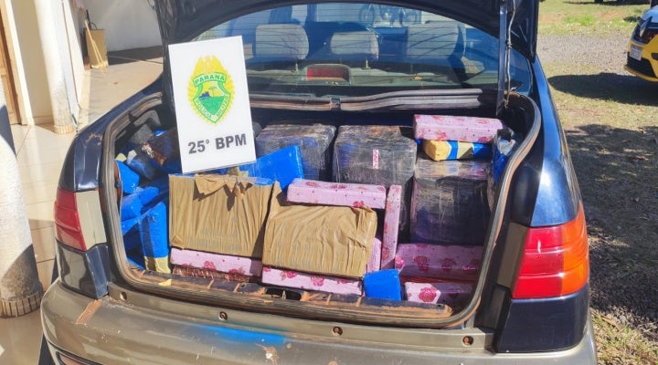 No carro, além das drogas, também havia um rádio comunicador na frequência da PM. O 25º Batalhão de Polícia Militar de Umuarama deve divulgar mais informações assim que o flagrante for finalizado.