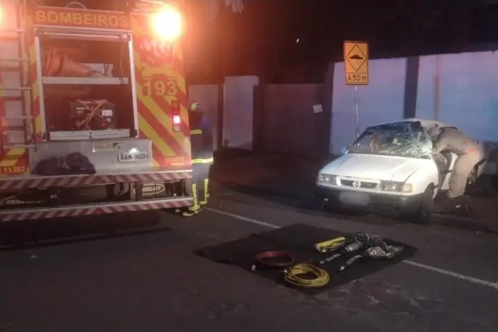 O impacto aconteceu no lado do condutor e causou grande deformação no veículo. Foi necessário o acionamento do Corpo de Bombeiros para serrar a porta e desenclausurar o motorista.