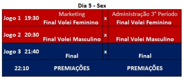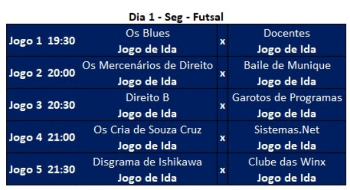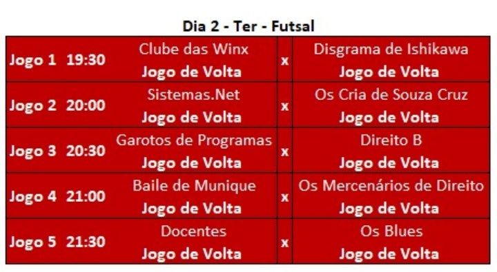 As disputas ocorrerão entre as turmas de todos os cursos da instituição e cada time terá sua própria torcida organizada. Todos que tiverem interesse poderão assistir aos jogos que serão abertos ao público.