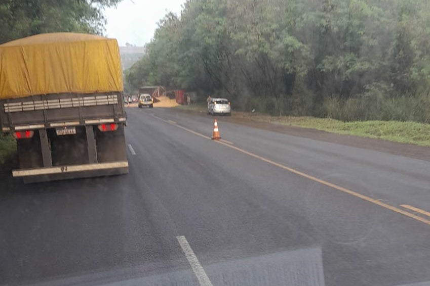Neste momento a rodovia está interditada nos dois sentidos. Em breve mais informações.