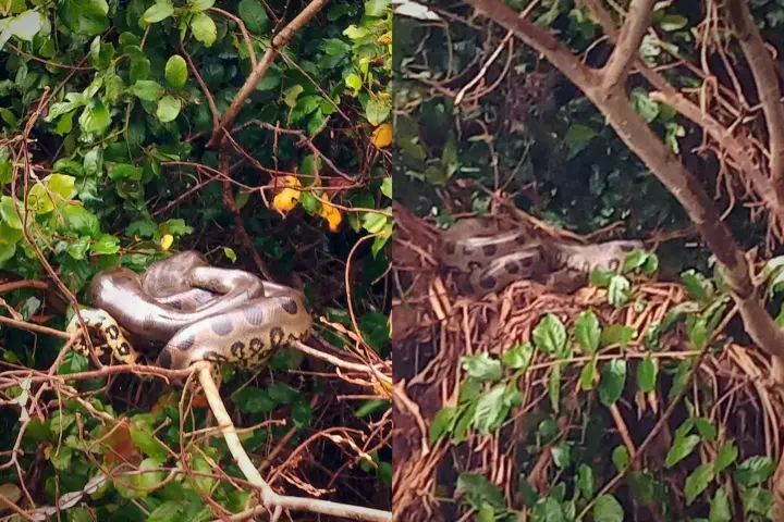 Marcos explicou que estava em um barco acompanhado de sua esposa e um casal de cunhados pescando no local próximo da Ilha Brasil. Porém o tempo virou subitamente e eles tiveram que sair para evitar serem pegos pela chuva. Neste momento, eles avistaram as duas sucuris: uma menor em cima de um galho de árvore e outra enrolada em uma vegetação.