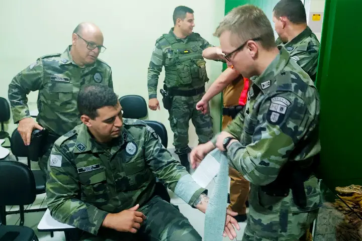 Na manhã desta quinta-feira (13) os integrantes do pelotão de Polícia Ambiental de Umuarama participaram de instrução de Procedimentos Operacionais Padrão (P.O.P.) de Atendimento Pré-Hospitalar em Combate (APHC).