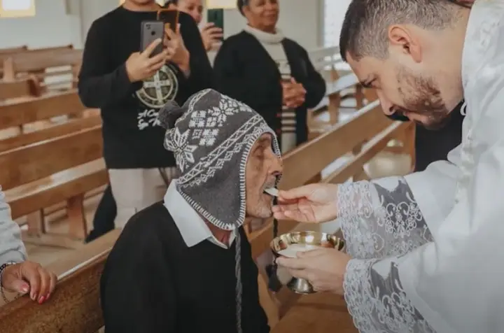 O senhor José Lourenço da Silva, de 104 anos, disse ‘sim’ a Cristo e recebeu os sacramentos do Batismo, da Eucaristia e da Crisma. A celebração foi presidida pelo vigário do Santuário Diocesano de São José, Padre Antônio Murilo Macedo da Luz.