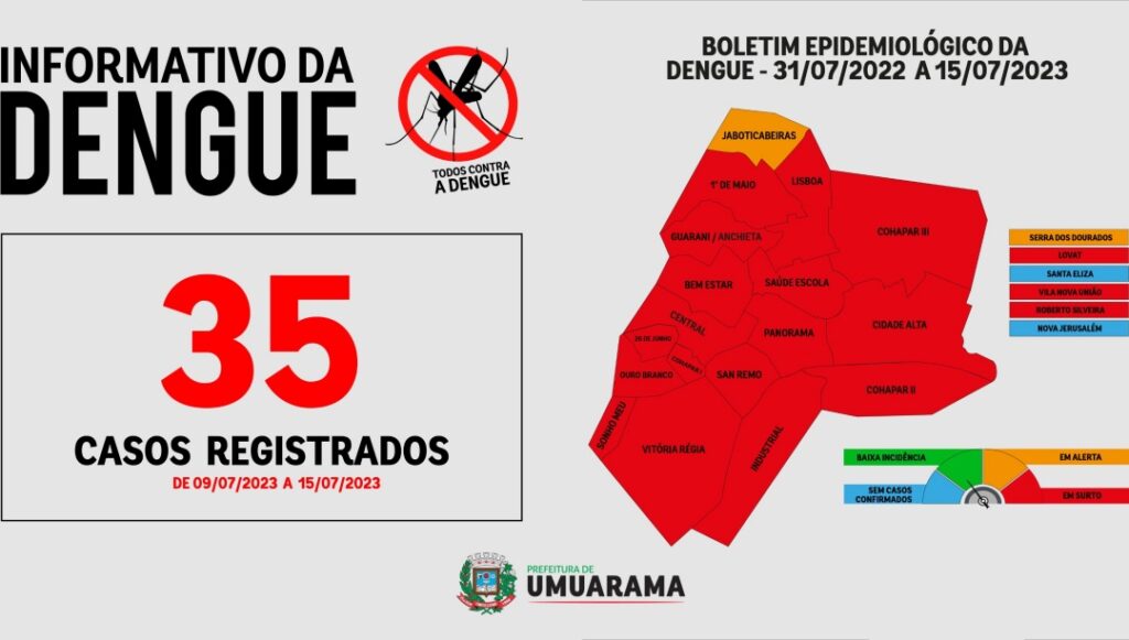 Apenas a região atendida pela Unidade Básica de Saúde (UBS) Jabuticabeiras, na área urbana de Umuarama, não está em surto de dengue. As demais 17 unidades estão com bandeira vermelha devido ao alto índice de casos confirmados da doença.