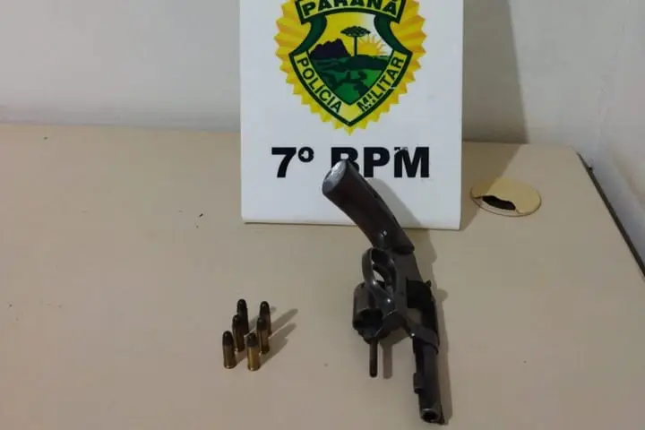 A situação foi atendida pela PM por volta das 22h, quando as equipes receberam informações que dois homens estariam arrumando confusão com clientes do bar e exibindo o revólver para as pessoas.